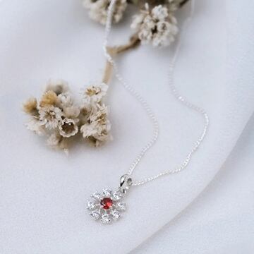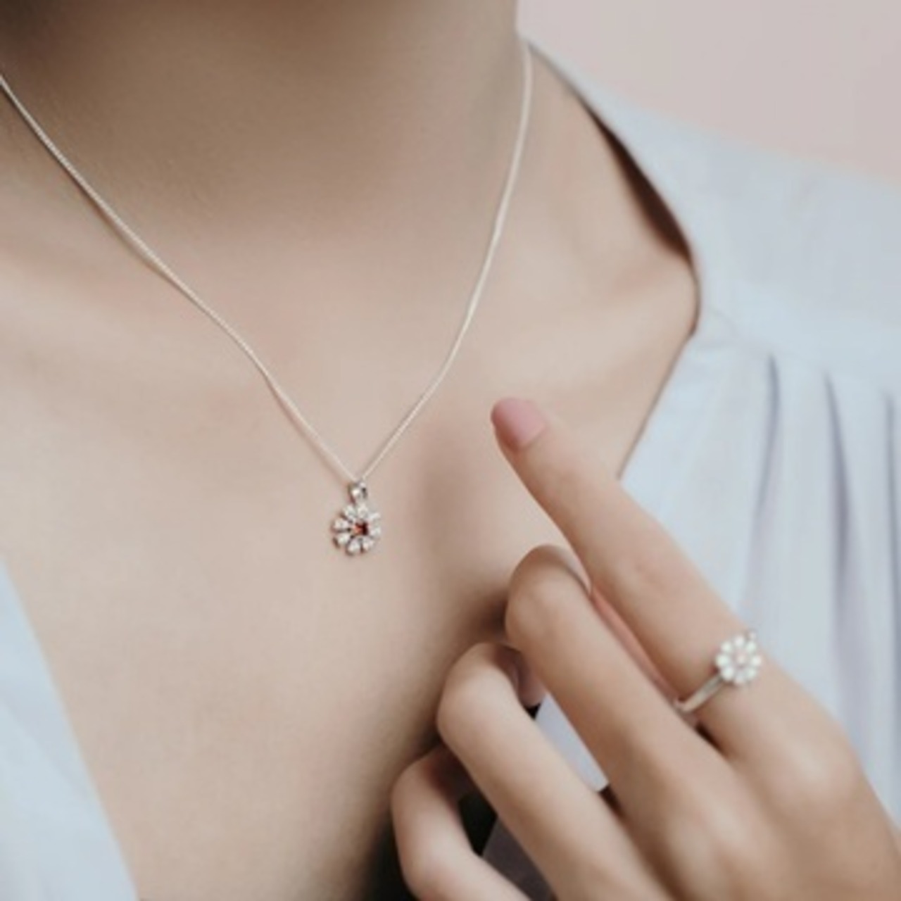 Inspired by the beauty of the Coreopsis flower. One of the main attractions of the Coreopsis Flower is its shape which resembles a small sunflower. The Coreopsis collection is available in 925 silver and gold, adorned with white zircon, and features a garnet and amethyst stone in the center.